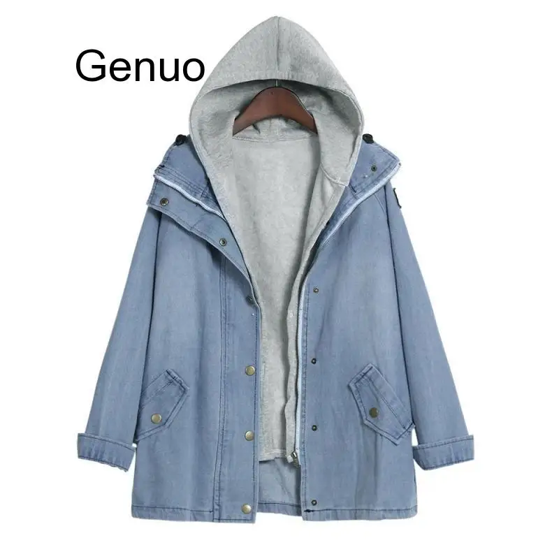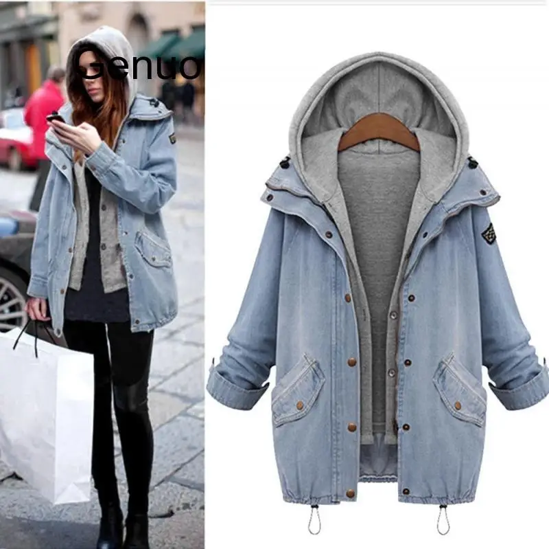 .Gallery for Plus Size 7XL Winter Women Jean Jacket Warm Collar Hooded Coat Jacket Denim Parka Outwear Long Bomber Women Streatwear Jacket