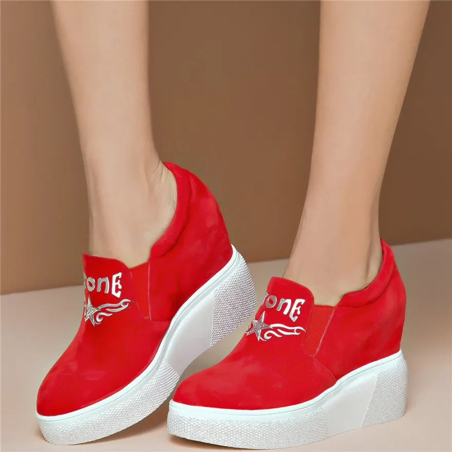 .Gallery for Fashion Sneakers Women Genuine Leather Wedges High Heel Vulcanized Shoes Female Pointed Toe Platform Pumps Shoes Casual Shoes