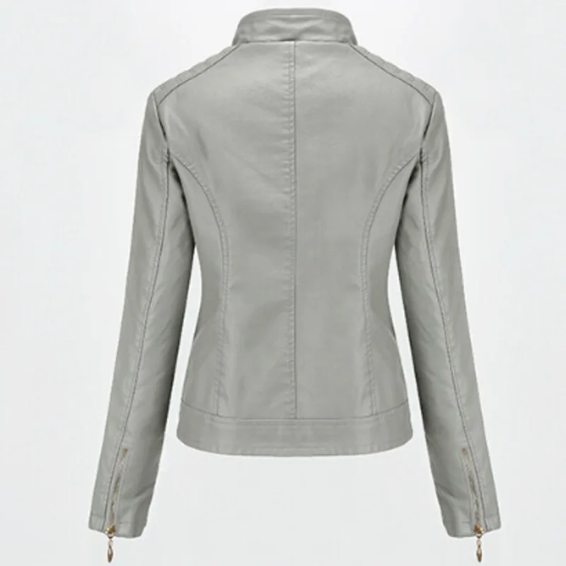 .Gallery for 2020 Women Faux Leather Jackets Korean Style Clothing Spring Female Black Coats Leisure Long Sleeve Stand Zipper Chaqueta Mujer