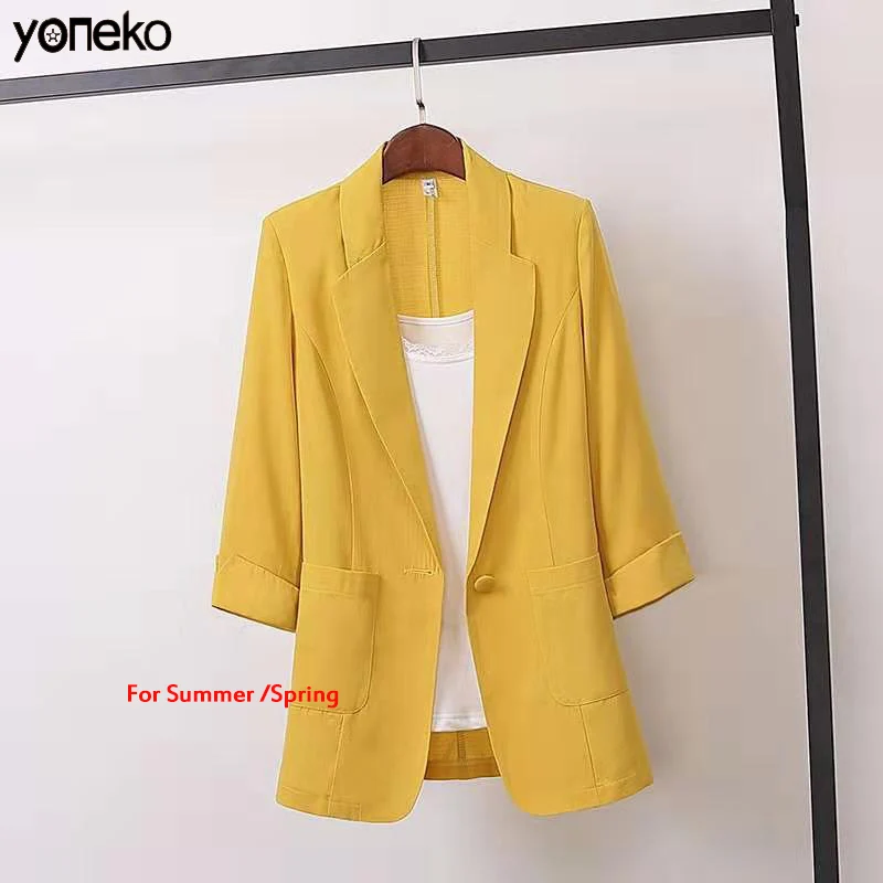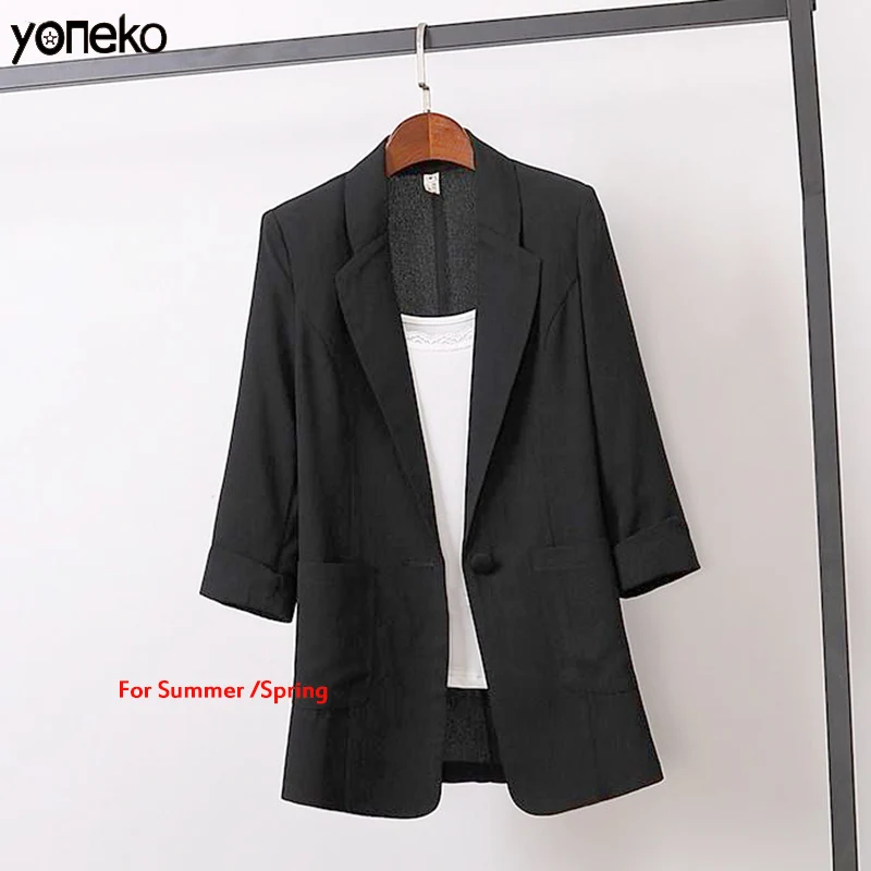 .Pictures for 2020 Spring Autumn cotton linen plus size Blazer jacket women Solid 3/4 sleeve Loose Casual Suit Fashion Women Outerwear Tops
