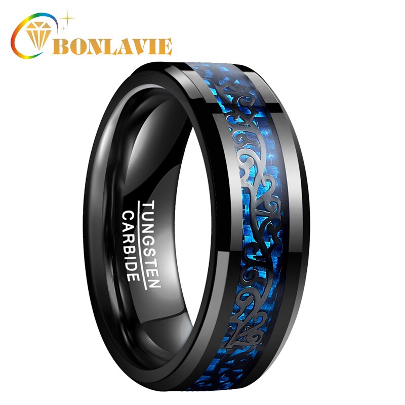 Bonlavie Wedding Bands Men Ring Black Vine Blue Carbon Fiber 100 Tungsten Steel Rings Male Jewelry Shopee Indonesia