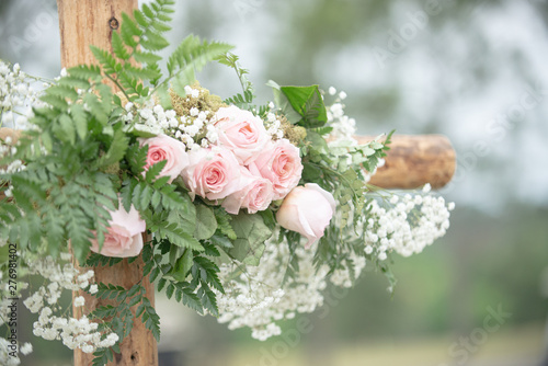 Wooden Cross Wedding Altar With Pink Roses For Outdoor Wedding Ceremony Buy This Stock Photo And Explore Similar Images At Adobe Stock Adobe Stock